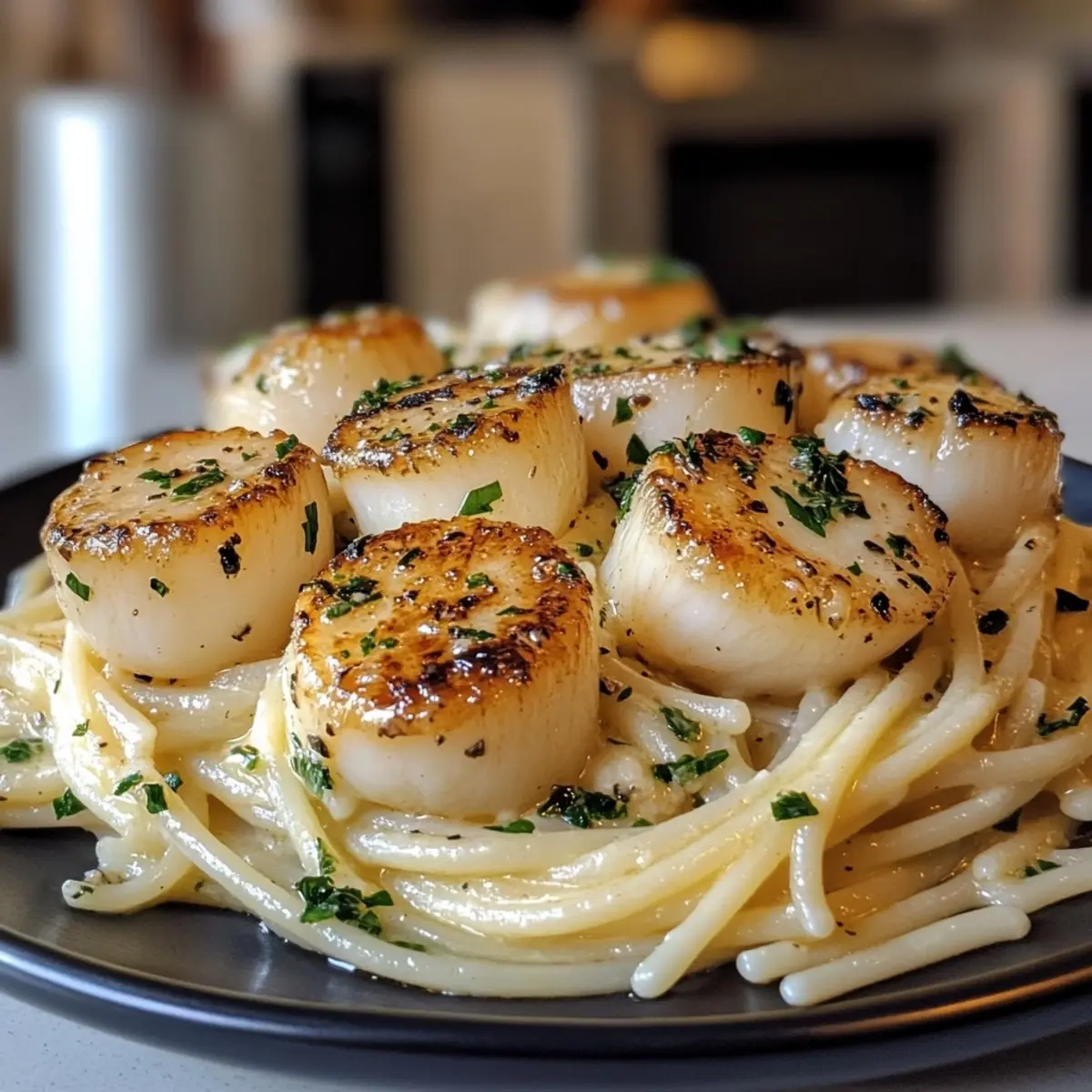 Elegant Flavors: The rich garlic butter sauce elevates the sweet scallops and linguine, creating an unforgettable taste experience.
