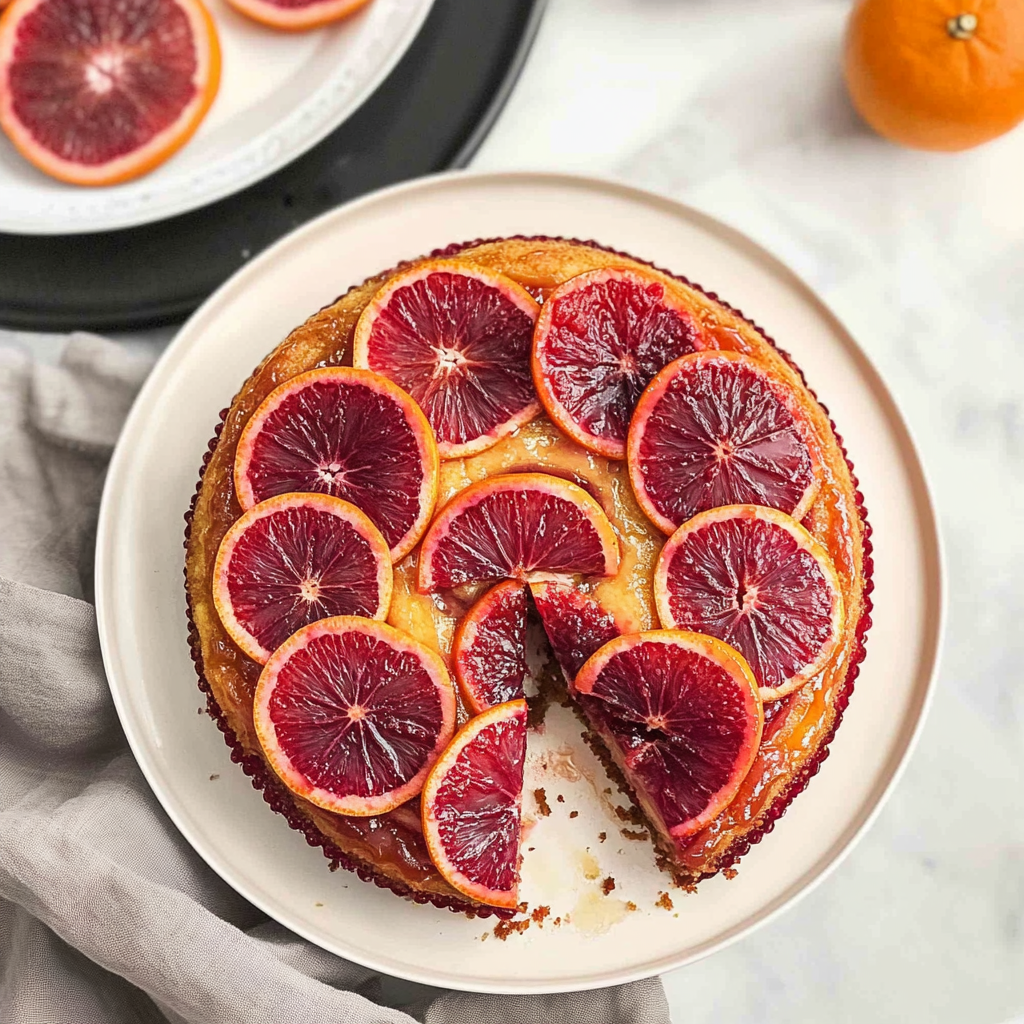 In summary, the Blood Orange Upside-Down Cake is a visually stunning dessert that combines sweet and tart flavors beautifully. Its caramelized blood orange topping adds both flavor and an eye-catching appearance. Storing this cake is simple, allowing you to enjoy it for several days after baking. Feel free to experiment with different citrus fruits if needed. Serve it warm with ice cream or whipped cream for an unforgettable treat that impresses at any gathering.