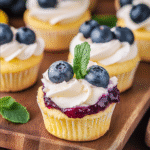 Blueberry Lemon Cheesecake Cupcakes are delightful mini desserts that combine the creamy texture of cheesecake with refreshing flavors of blueberries and lemon. Each cupcake features a buttery graham cracker crust, a rich cheesecake filling infused with lemon zest, and is topped with a blueberry compote. fruit-flavored cupcakes These treats are perfect for any occasion, offering a light yet indulgent taste that will leave everyone wanting more.