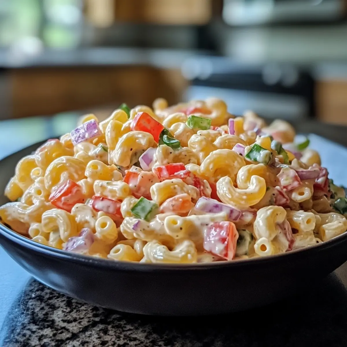 Vibrant flavors: Each bite of this Cajun Macaroni Salad bursts with tangy dressing and zesty spices that make your taste buds sing.