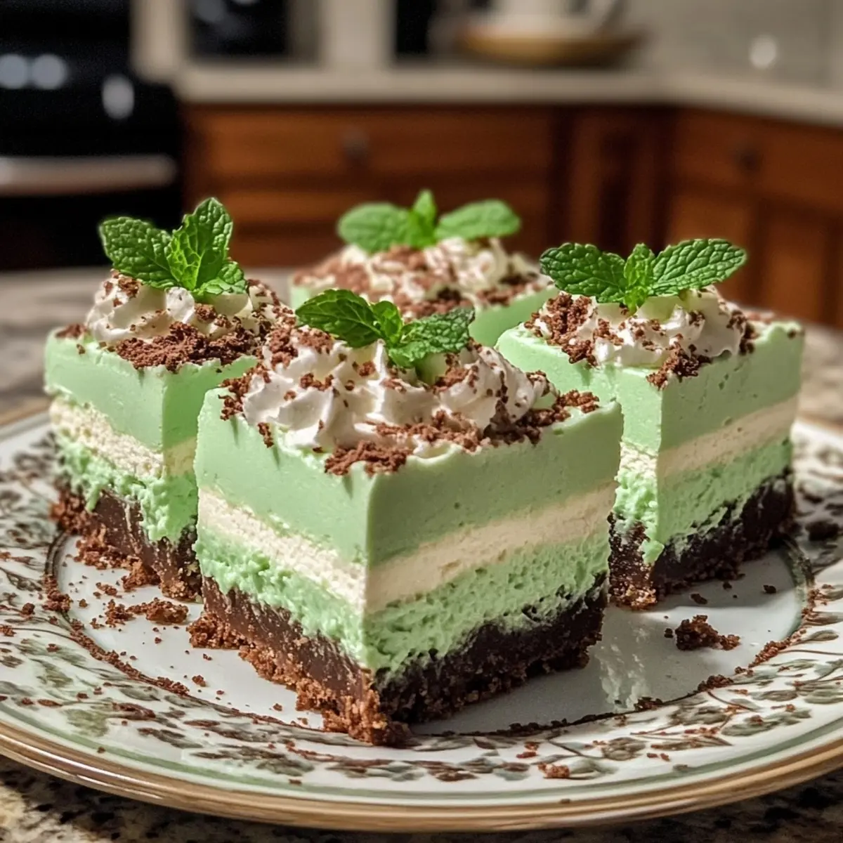 • Whipped Cream: A dollop on top of each bar enhances the creamy texture while providing an airy companion to the minty flavors.
