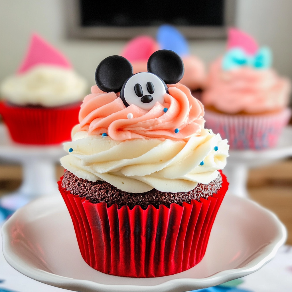Magical Mickey Mouse Santa Hat Cupcakes with Buttercream