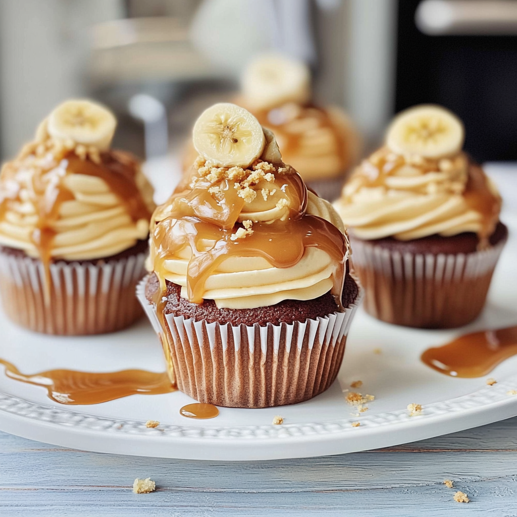 Indulge in Caramel Banana Cupcakes with Toffee Frosting